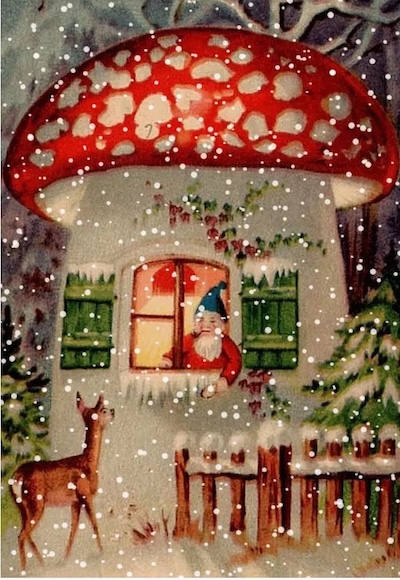 Santa's dress code and trusty flight companions aren't the only connections to the psychedelic experience. Amanita mushrooms decorate
